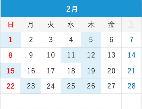 毎週木曜・日曜(第1・3・5)・水曜(第2・4)・祝日 ※月ごとに休診日が変更になる場合がございます。 詳しくはカレンダーをご覧ください。 |