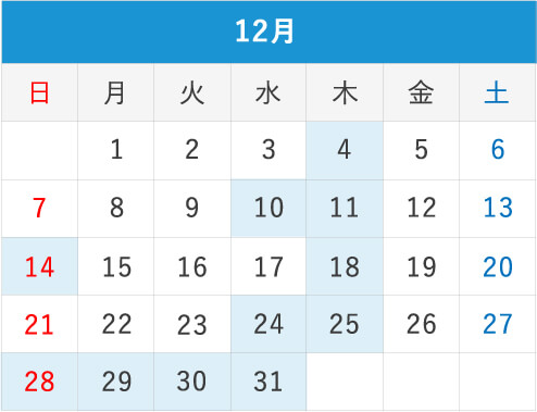 毎週木曜・日曜(第1・3・5)・水曜(第2・4)・祝日 ※月ごとに休診日が変更になる場合がございます。 詳しくはカレンダーをご覧ください。 |