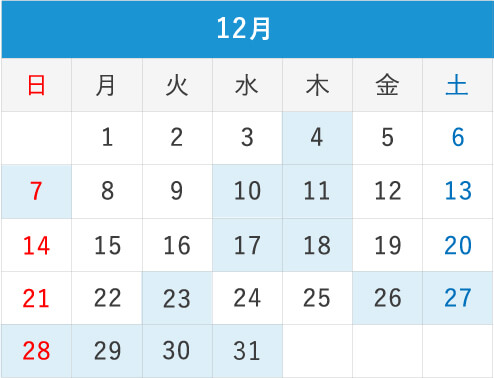 | 休診日 | 毎週木曜・日曜(第1・3・5)・水曜(第2・4)・祝日 ※月ごとに休診日が変更になる場合がございます。 詳しくはカレンダーをご覧ください。 |